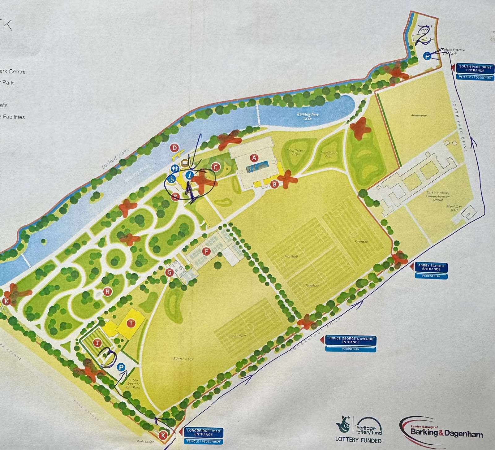 Малко насоки как да стигнете до училището, идвайки за първи път. До сградата се стига по пешеходни паркови алеи. Възможностите да паркирате: - Barking park south car park IG3 9AX. Моля, обърнете внимание, че посткода не води точно до паркинга, а наоколо. Използвайте снимката, обозначен е с 2. Безплатен, без ограничение във времето. За ориентир входа е до Allotment site south park drive , който е с пост код IG11 8UD. - Longbridge road western car park / обозначен с 3/ IG11 8TA. Безплатен до 2 часа, но изисква регистрация чрез ап и локация на място. Самата улица пред парка Longbridge road също има безплатно паркиране, но само в определени часове. Винаги четете табелите. Училището се намира точно до кафенето и непосредствено до мястото където се отдават водни колела с форма на еднорози. Сплаш парка е на 100 метра. Очакваме Ви.